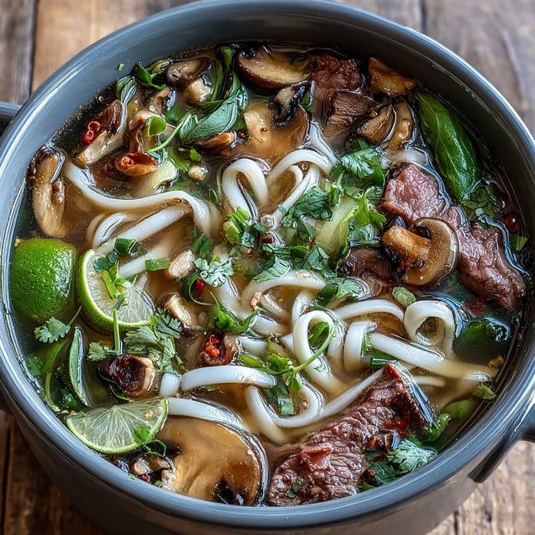 Pin It As the aromatic steam rises from the pot, the scents of ginger, garlic, and star anise fill the room, setting the stage for a memorable meal. This dish perfectly balances the richness of the beef sirloin with the brightness of Thai basil, cilantro, and fresh lime.