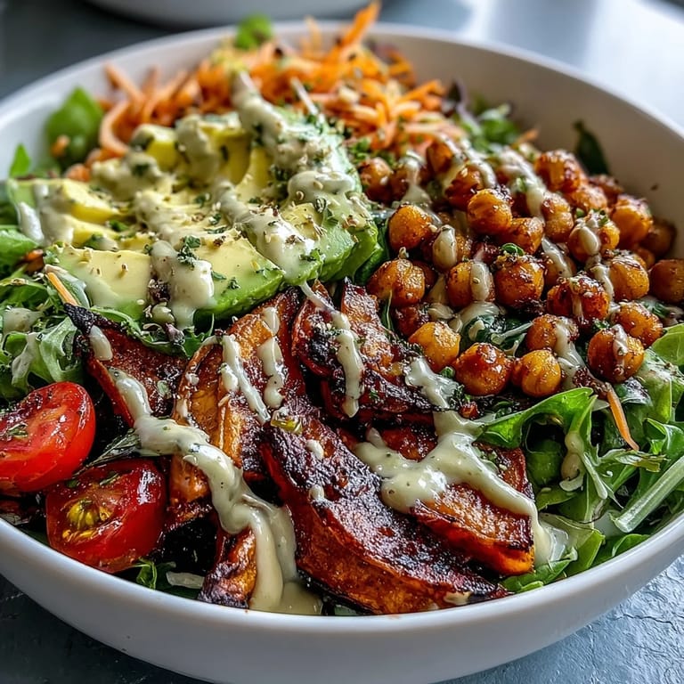 This bowl is a canvas more than a rigid recipe, and the best mornings happen when you work with whatever vegetables actually look fresh at the market. Butternut squash works beautifully if sweet potatoes feel boring, regular potatoes make it earthier, and adding a soft-boiled egg transforms it into something that'll keep you satisfied until lunch. The core philosophy remains the same: roasted vegetables, crisp chickpeas, fresh elements, and enough dressing to make it all sing together.