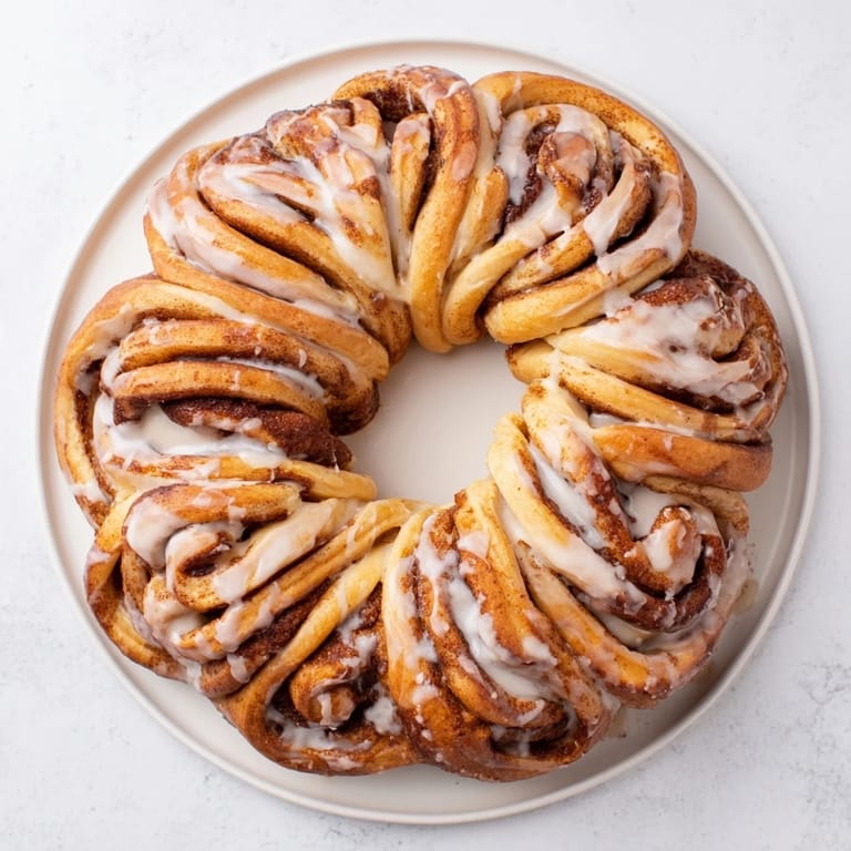 Pin It A showstopping, shareable cinnamon roll wreath—soft, fluffy, and drizzled with vanilla glaze. Perfect for a festive brunch or cozy morning treat.