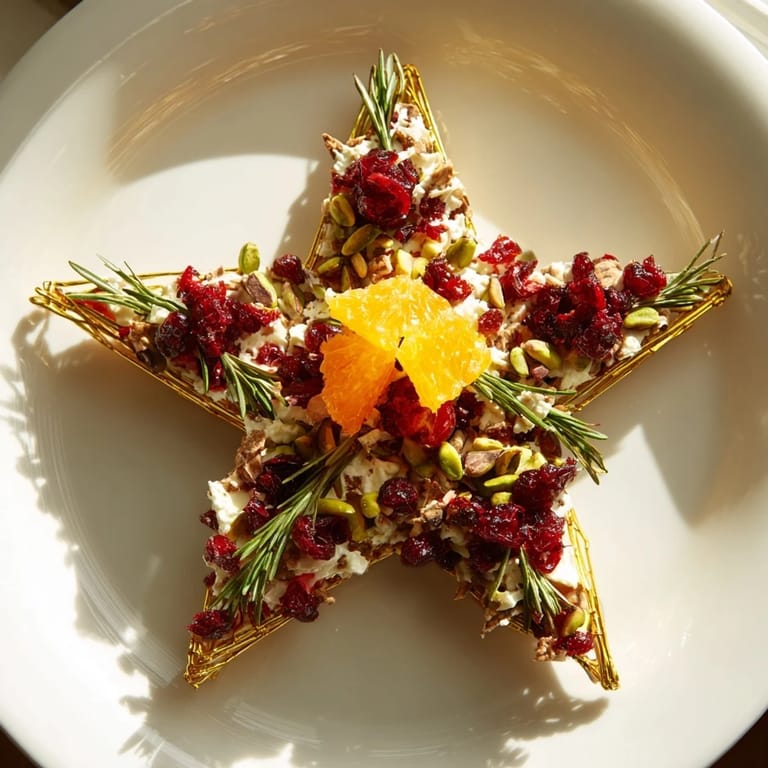 - Cool slightly, then garnish with pomegranate seeds scattered across the rays, chopped pistachios in the center and along the points, and fresh rosemary sprigs tucked between the points like little evergreen decorations. Serve warm or at room temperature, and watch people's faces when they see what you've created.