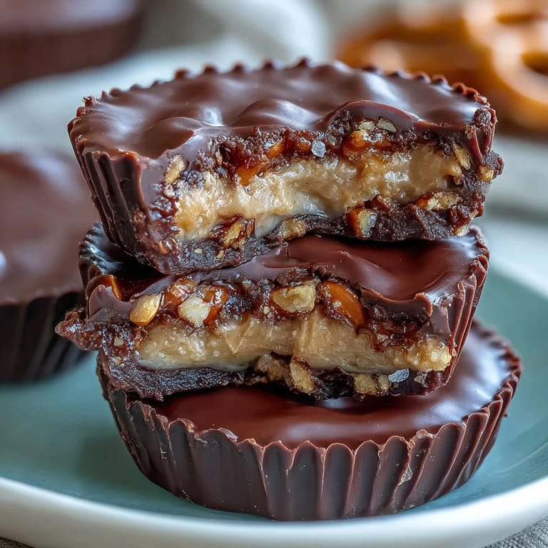 Pin It My coworker Sarah brought these to the office one Tuesday, and I watched three people stop mid-conversation to ask for the recipe. There's something about the combination of salty pretzel crunch meeting smooth chocolate that just works—it feels indulgent without being fussy. I made my first batch that weekend, and the smell of melting chocolate mixed with the nuttiness of peanut butter had my kitchen feeling like a professional candy shop. These homemade cups knocked the store-bought versions completely out of my rotation.