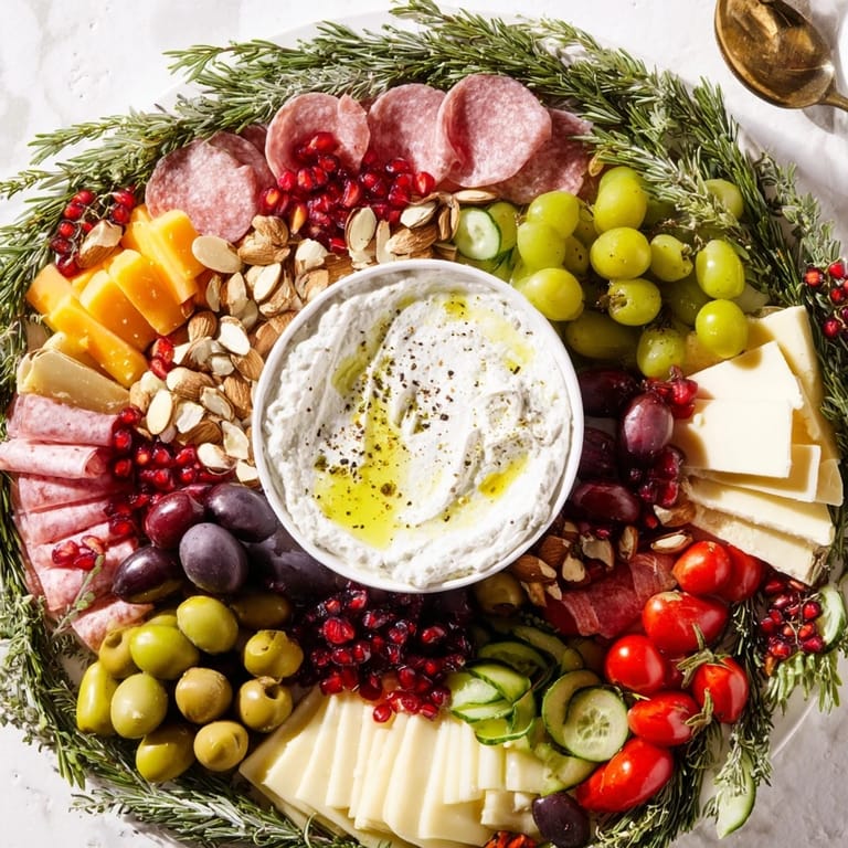 Pin It I'll never forget the year my sister challenged me to create something that would make everyone forget about the tired old cheese board. It was three days before Christmas, and I was standing in my kitchen wondering what could possibly feel fresh and festive enough. That's when I spotted the fresh rosemary on my windowsill, still dewy from the morning, and something clicked. I envisioned arranging cheeses, cured meats, and jewel-toned fruits not in boring lines, but in a lush wreath shape, as if I'd brought an entire holiday garden to the table. When guests arrived that evening and gasped at the sight of it, I knew I'd stumbled onto something magical. Now, every holiday season, this board makes its appearance, and it's become the centerpiece that everyone photographs and talks about long after the last grape is gone.