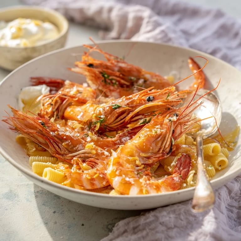 Pin It A vibrant, zesty shrimp scampi featuring fresh herbs and a tangy lemon sauce, served in light bowls for a nourishing, citrus-boosted weeknight dinner.