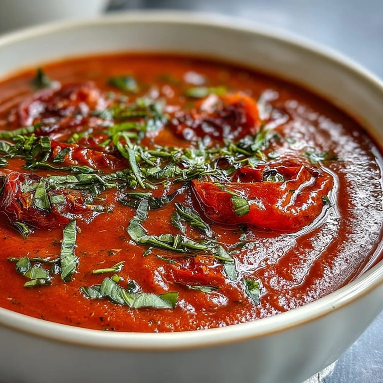 I made this for my sister's book club on a rainy Tuesday, and watching four different women asking for the recipe felt like a small victory. One guest mentioned she usually avoided tomato soup thinking it was always too acidic or thin, and this one changed her mind completely. That moment taught me that a truly good recipe isn't about complicated techniques—it's about respecting your ingredients enough to let them shine.