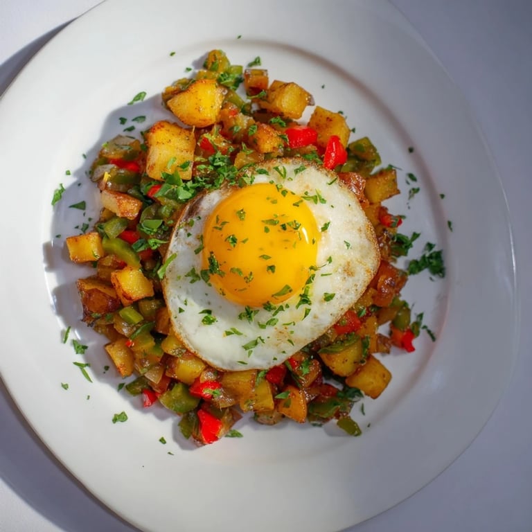 Pin It A comforting, rustic one-pan meal featuring golden potatoes, sautéed vegetables, and perfectly cooked eggs—ideal for a quick weeknight dinner or hearty breakfast.