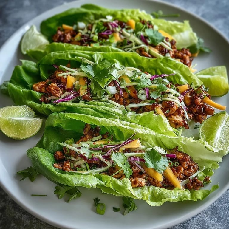Pin It Imagine a warm summer evening, the kind that calls for something light yet satisfying. These Skinny Spicy Turkey Lettuce Tacos with Mango Slaw are exactly what you need – a vibrant explosion of flavors that won't weigh you down. The spicy, aromatic turkey filling brings warmth and depth, while the sweet-tangy mango slaw offers a refreshing contrast that dances on your taste buds. It's the perfect balance of heat and coolness, wrapped in crisp lettuce leaves instead of traditional tortillas.