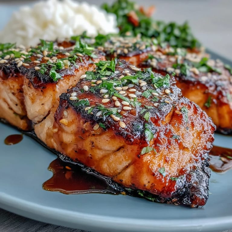 Pin It Experience the perfect balance of sweet and savory with these glossy salmon fillets. Oven-baked to tender perfection and coated in a rich, homemade teriyaki glaze, this dish offers a restaurant-quality experience right in your own kitchen. The addition of toasted sesame seeds and fresh spring onions provides a delightful crunch and a burst of color to every plate.